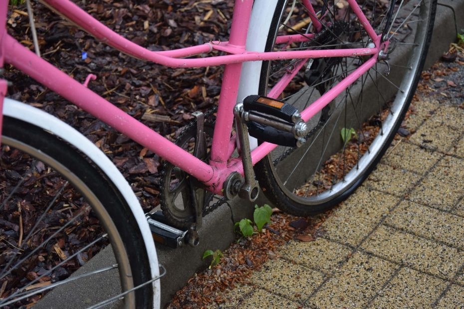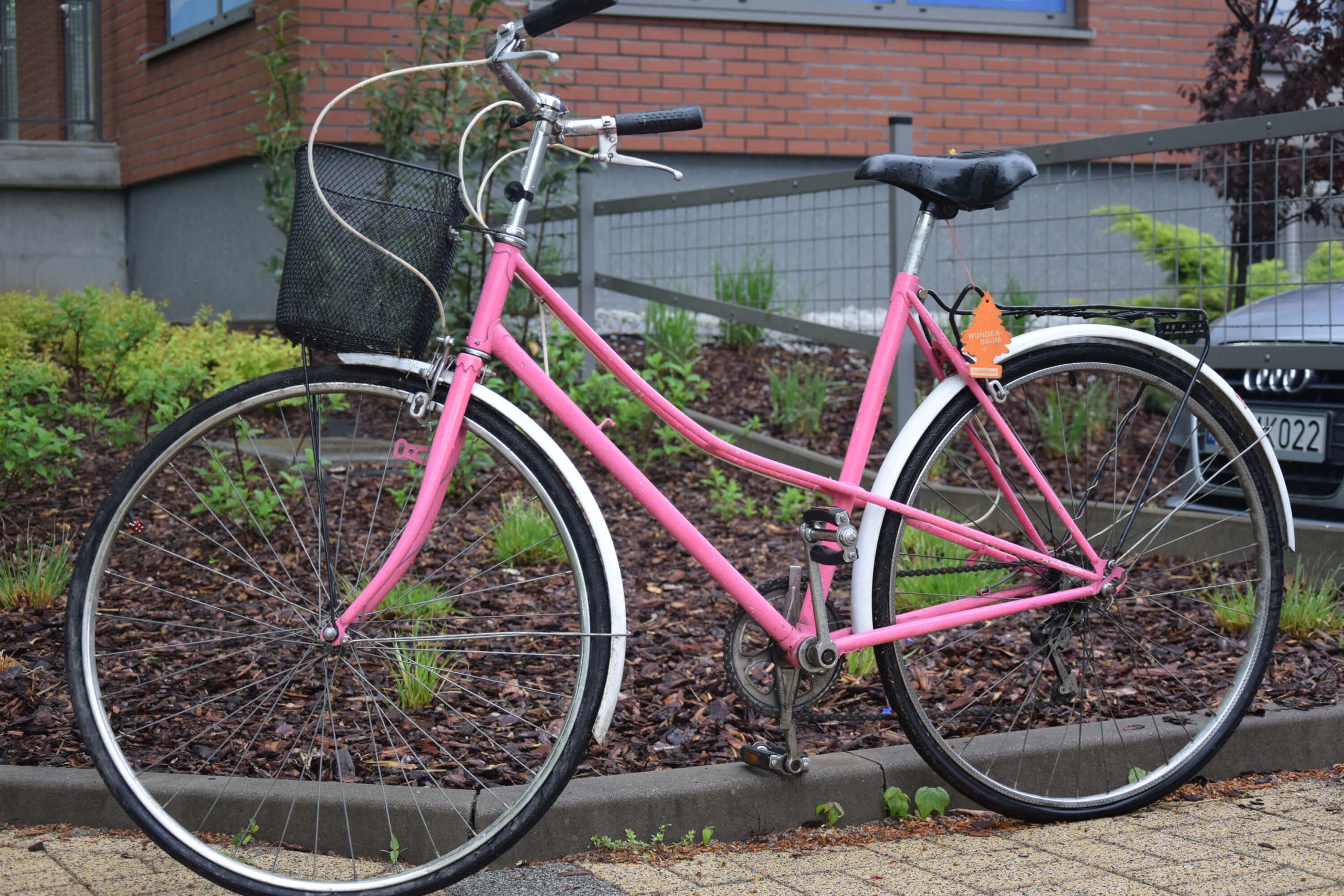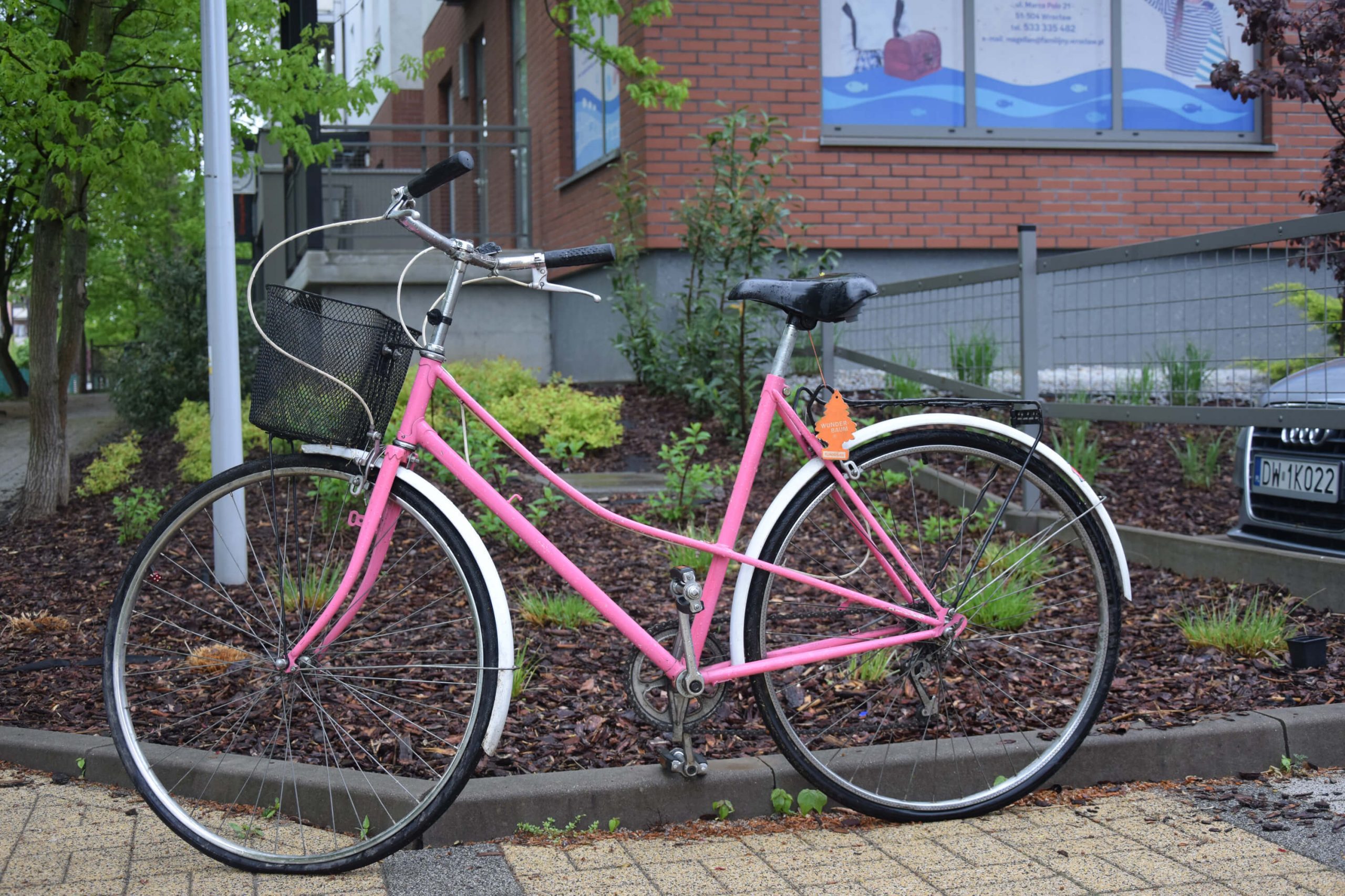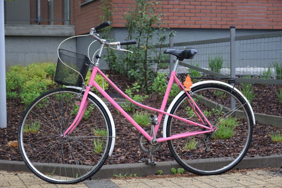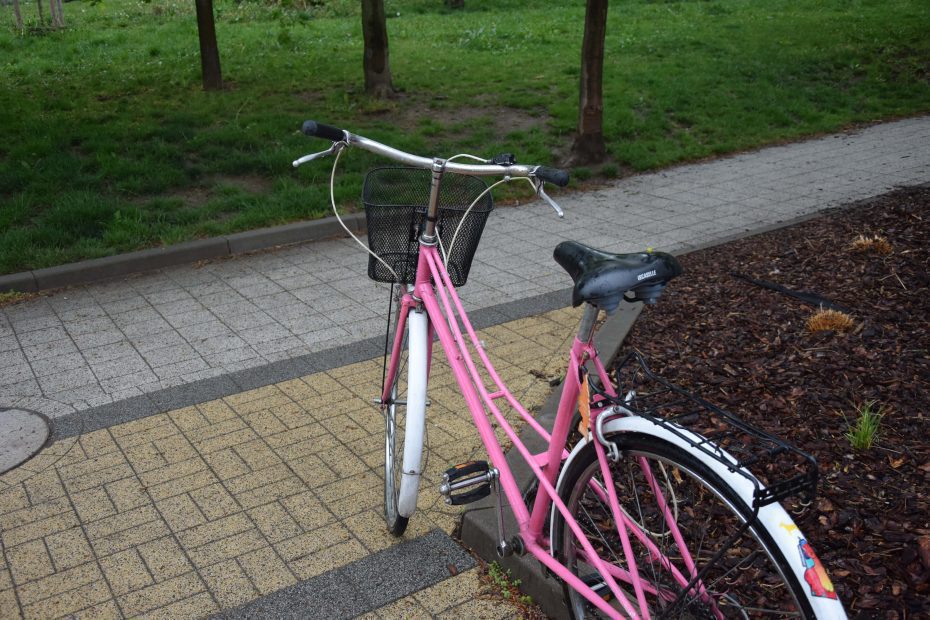 Ten różowy rower miejski, wypatrzyłem na facebookowej grupie naszego osiedla. Poprzednia właścicielka chciała się go pozbyć ponieważ kupiła sobie nowy rower, na którym chciała jeździć z małym dzieckiem.
